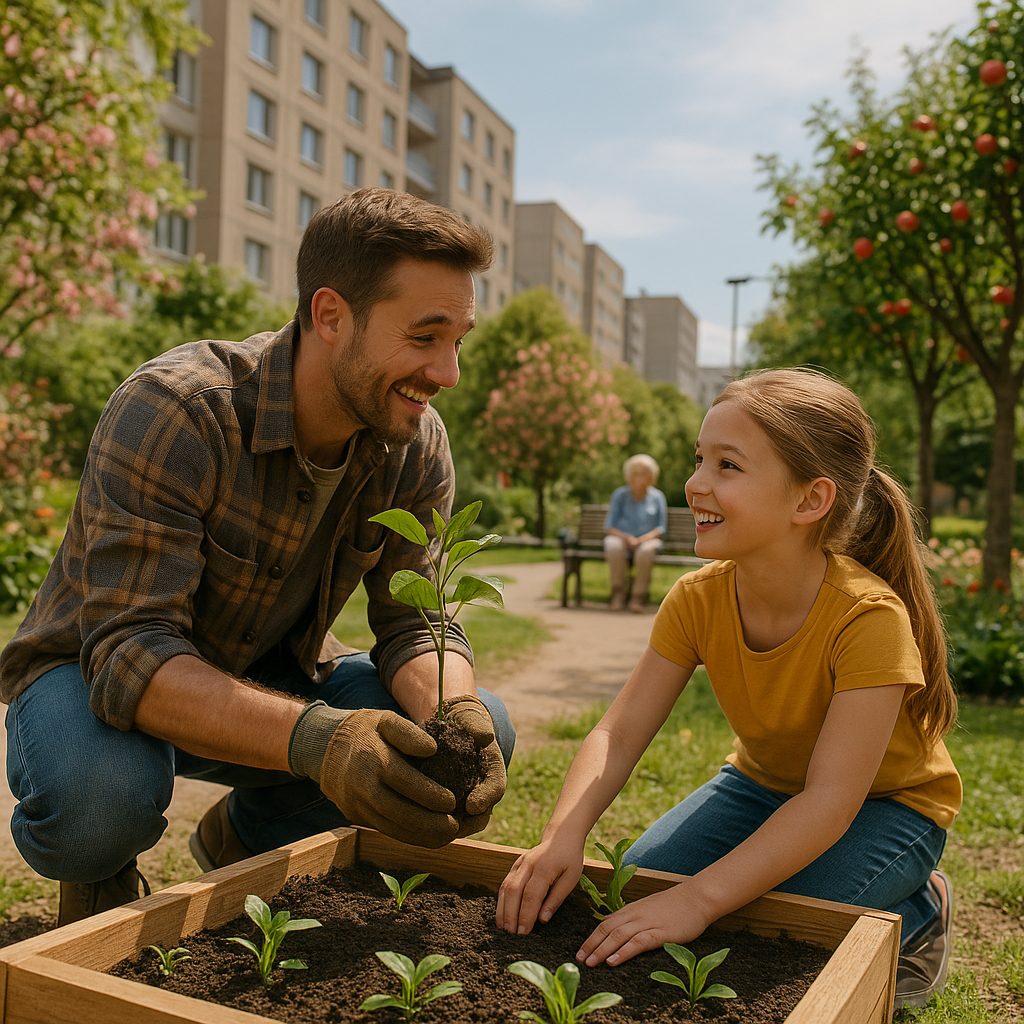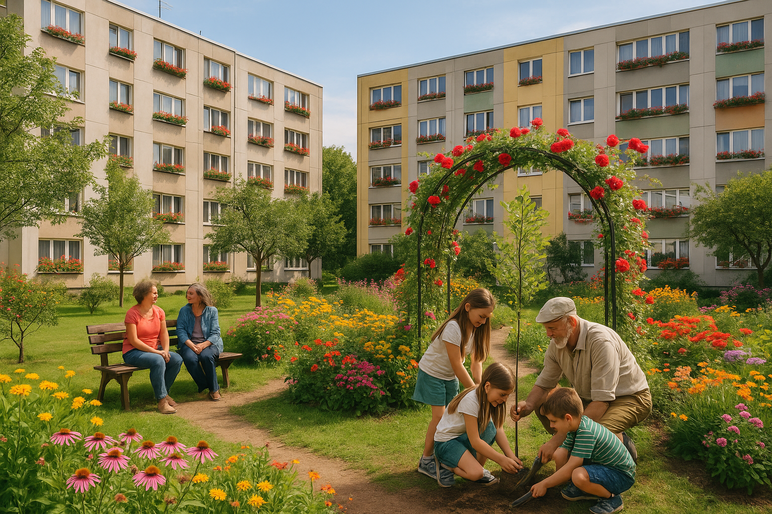 Jaké prostředí formuje naše děti? Co si z dětství odnáší do života? Zahradní sídliště není jen hezčí na pohled – vytváří přirozený prostor pro zvídavost, pohyb, hru a vztah k přírodě. Stromy místo parkovišť, květiny místo reklam, posezení místo betonových koutů – to jsou kořeny zdravější společnosti. A tu stavíme právě dnes.