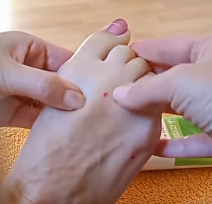 2. Najdi místa mezi kostmi prstů (metatarzy) – od 2. po 4. prst.
